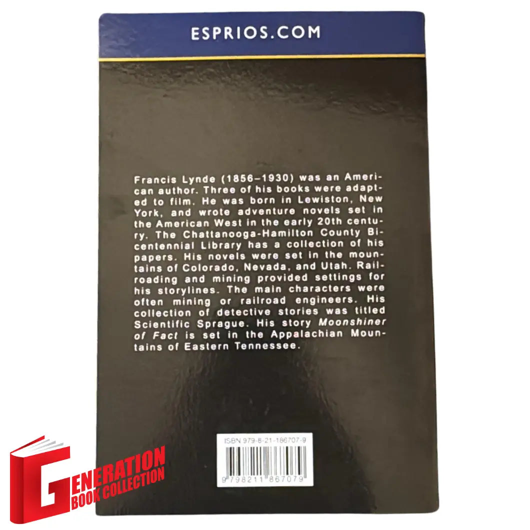 Francis Lynde (1856-1930) was an American author. Three of his books were adapted to film. He was born in Lewiston, New York, and wrote adventure novels set in the American West in the early 20th century. The Chattanooga-Hamilton County Bicentennial Library has a collection of his papers. His novels were set in the mountains of Colorado, Nevada, and Utah. Railroading and mining provided settings for his storylines. The main characters were often mining or railroad engineers. His collection of detective stories was titled Scientific Sprague. His story Moonshiner of Fact is set in the Appalachian Mountains of Eastern Tennessee.