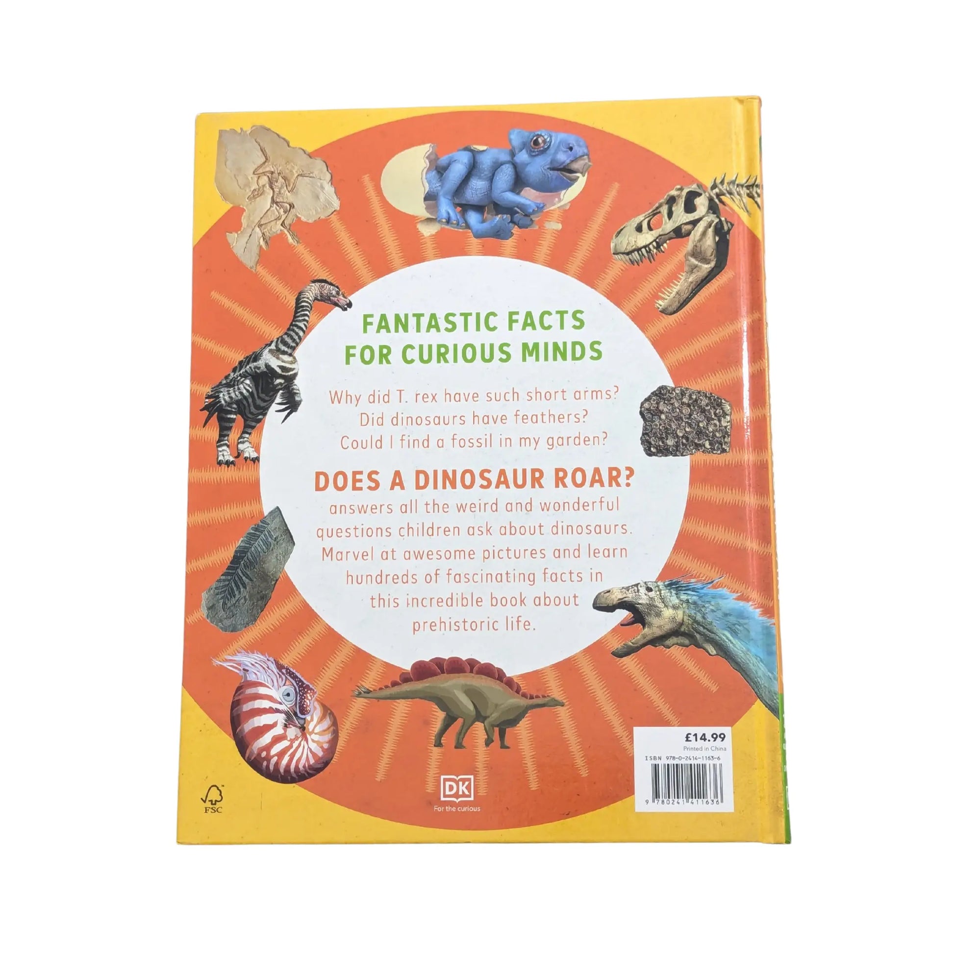 Could I have a pet dinosaur Why did T. rex have such short arms What can we learn from dinosaur pooExplore the intriguing answers to more than 200 questions about dinosaurs in DK's newest dinosaur encyclopedia for kids.This children's book, ideal for ages 6-9, will help inquisitive minds find out the answers to all the dinosaur questions they may have, and some they hadn't thought of! Did dinosaurs sleep Did they have feathers Covering amazing ancient creatures, fantastic fossils, and the positively perplexing prehistoric world, Does a Dinosaur Roar helps children get to grips with the gigantic topic that is dinosaurs. Bursting with up-to-date facts and discoveries, this visually stunning book is something that every young dinosaur enthusiast and fossil hunter will want to own. Get your child learning with this amazing dinosaur book, which is packed with fantastic facts for curious minds.