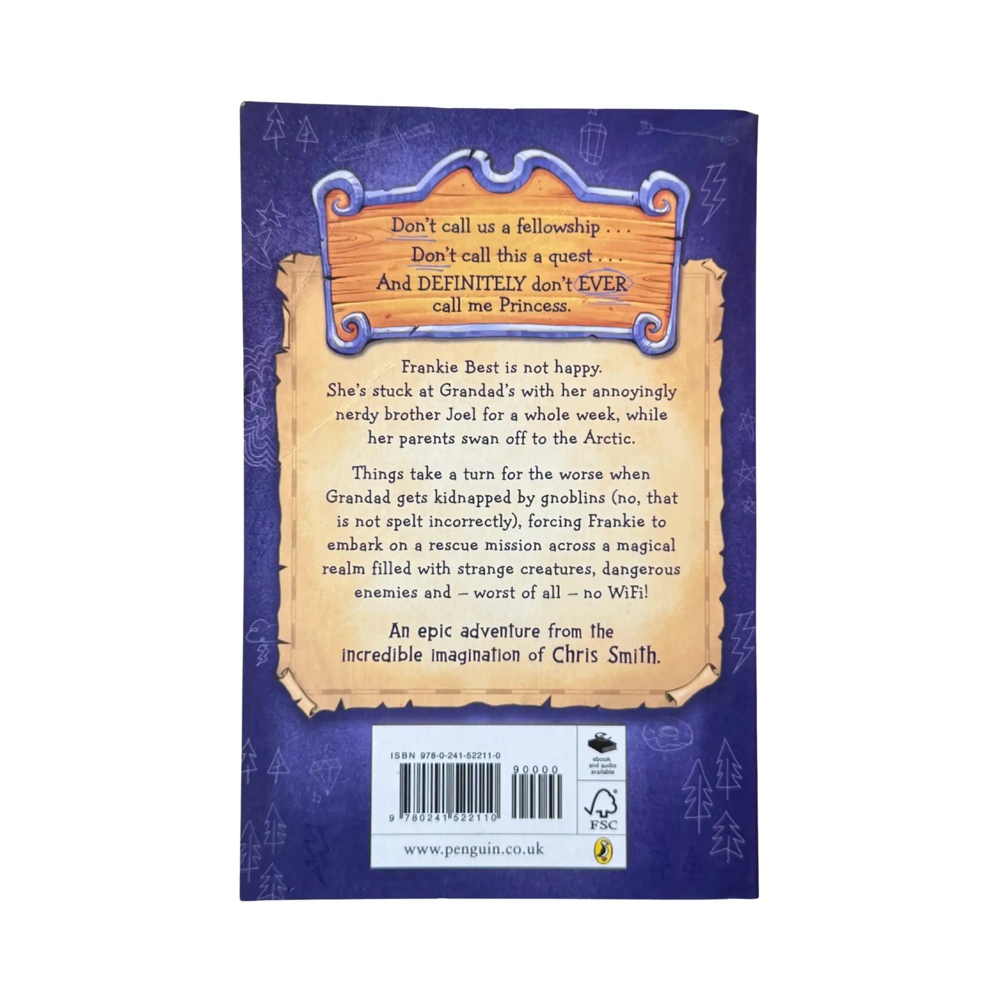 'A laugh-out-loud funny and exciting adventure!' Cressida CowellFrom the incredible imagination of Chris Smith - bestselling author and now a major new solo talent - comes an extraordinary accidental adventure for fans of Cressida Cowell and Pixar's Onward.Frankie Best is not happy.She's stuck at Grandad's with her annoyingly nerdy brother Joel for a whole week while her parents swan off to the Arctic.Things take a turn for the worse when Grandad gets kidnapped by gnoblins (no, that is not spelt incorrectly) forcing Frankie to embark on a rescue mission across a magical realm filled with strange creatures, dangerous enemies and - worst of all - absolutely no WiFi.Frankie did have big plans to watch YouTube and eat pot noodles that weekend but it looks like she'll just have to go on an epic mega-dangerous quest instead . . .