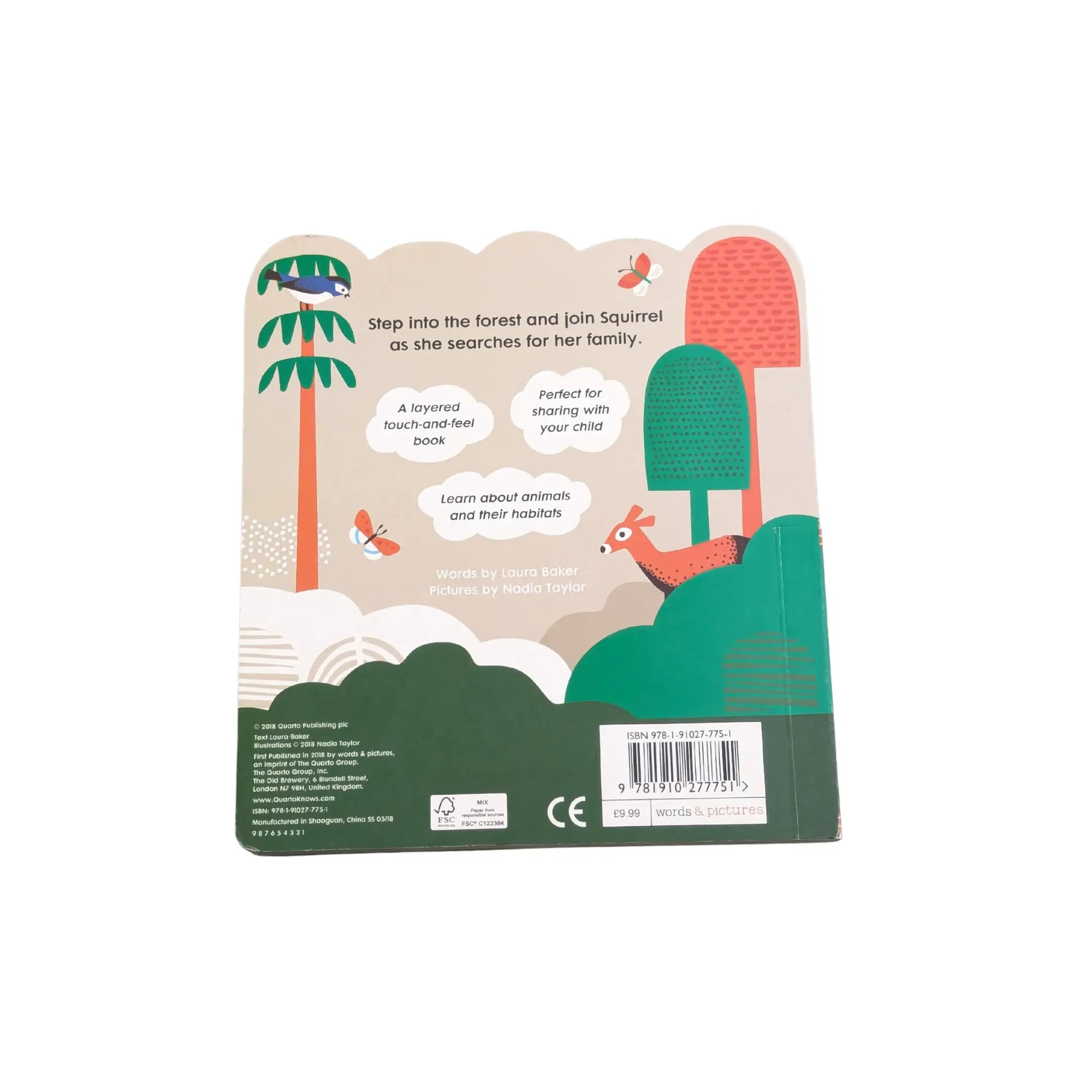 Into the Forest is a beautiful board book for pre-school children that introduces them to animals and their habitats. Through a simple narrative about a squirrel looking for her family, it shows different animal families as they go about their daily lives. With gently rhyming text and beautiful illustrations, this "touch and feel" book is layered in a way that encourages the reader to interact with the book and turn each page, delighting in the increasingly expansive spreads. Into the Forest is the second in the "Into the..." series, following on from Into the Ocean.