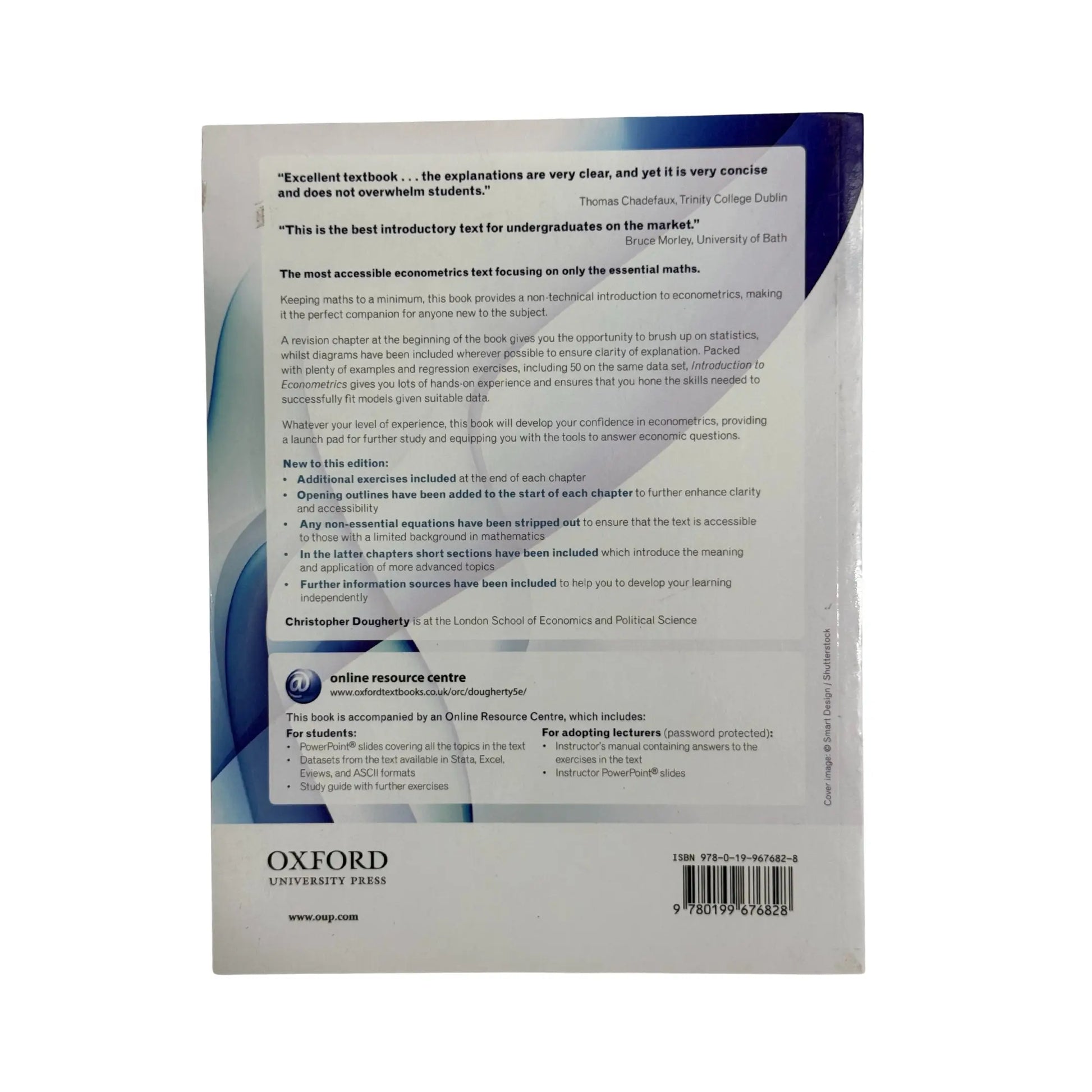 Retaining the student-friendly approach of previous editions, Introduction to Econometrics, Fifth Edition, uses clear and simple mathematics notation and step-by step explanations of mathematical proofs to help students thoroughly grasp the subject. Extensive exercises throughout build students' confidence and provide them with hands-on practice in applying techniques.The fifth edition features a comprehensive revision guide to all the essential statistical concepts needed to study econometrics, additional Monte Carlo simulations, new summaries, and non-technical introductions to more advanced topics at the end of chapters.This book is supported by an Online Resource Centre, which includes:For lecturers:* Instructor's manual for the text and data sets, detailing the exercises and their solutions* Customizable PowerPoint slidesFor students:* Data sets referred to in the book* A comprehensive study guide offers students the opportunity to gain experience with econometrics through practice with exercises* Software manual* PowerPoint slides with explanations