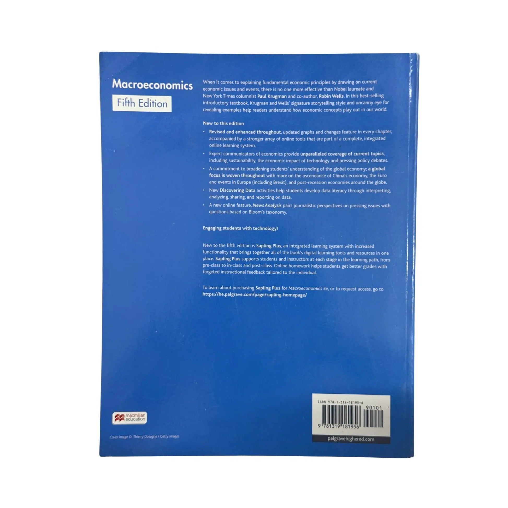 When it comes to explaining fundamental economic principles by drawing on current economic issues and events, there is no one more effective than Nobel laureate and New York Times columnist Paul Krugman and co-author, Robin Wells . In this best-selling introductory textbook, Krugman and Wells signature storytelling style and uncanny eye for revealing examples help readers understand how economic concepts play out in our world.Macroeconomics 5e provides unparalleled coverage of current topics, including sustainability, the economic impact of technology and pressing policy debates.