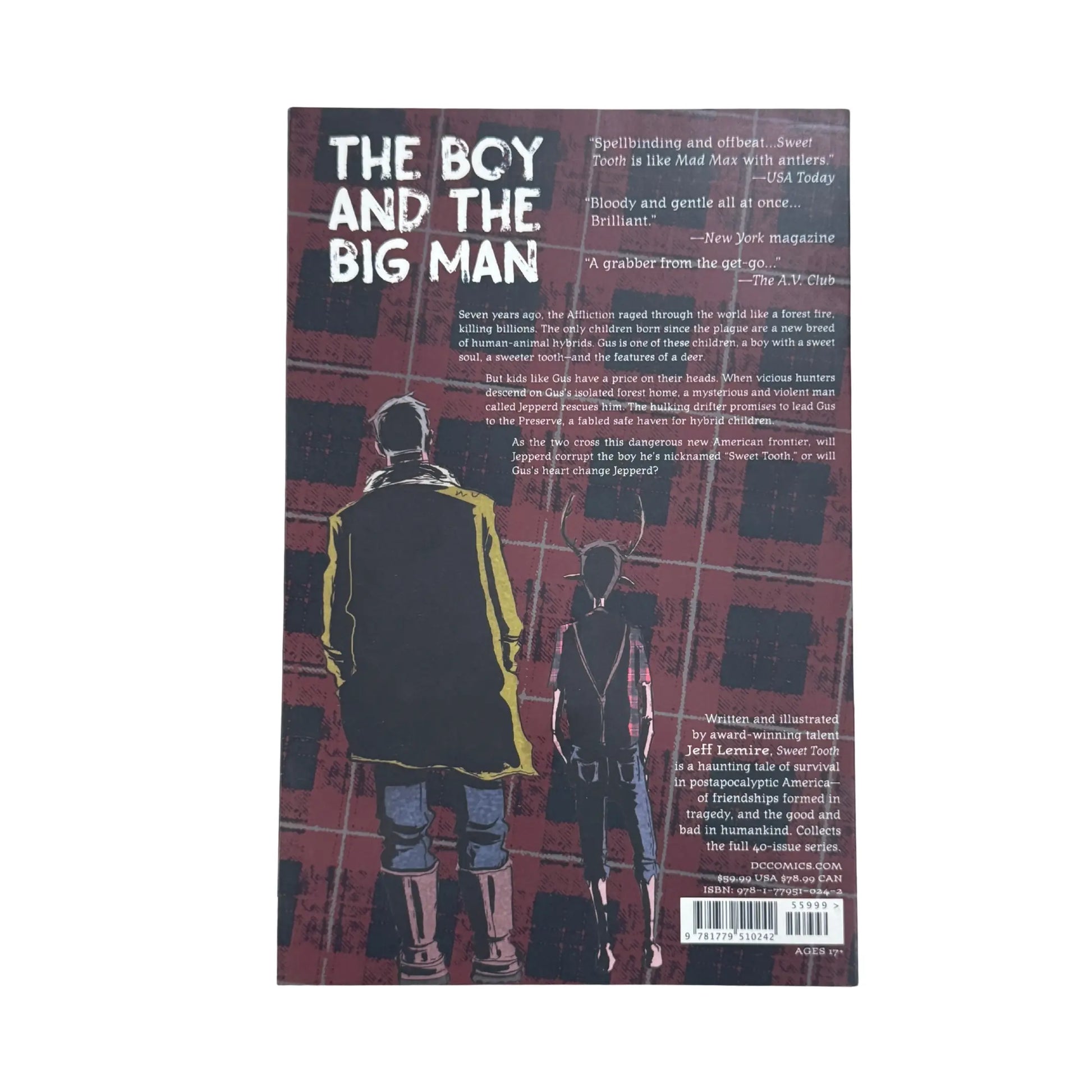 Now a Netflix Original Series!For readers eager to dive right into Jeff LeMire's strange sci-fi story, Sweet Tooth the compendium is now available!An inexplicable plague has women giving birth to human-animal hybrid children all over the world. The deer-child Gus is left to fend for himself after his father dies, leaving him with more questions than answers. A cross between Bambi and Cormac McCarthy's The Road, Sweet Tooth follows the innocent journey of a young hybrid boy suddenly thrust out into a world no one can explain.Collects issues #1-40 in a new story-only collection that places the reader directly into the action and doesn't let up until the very last page!