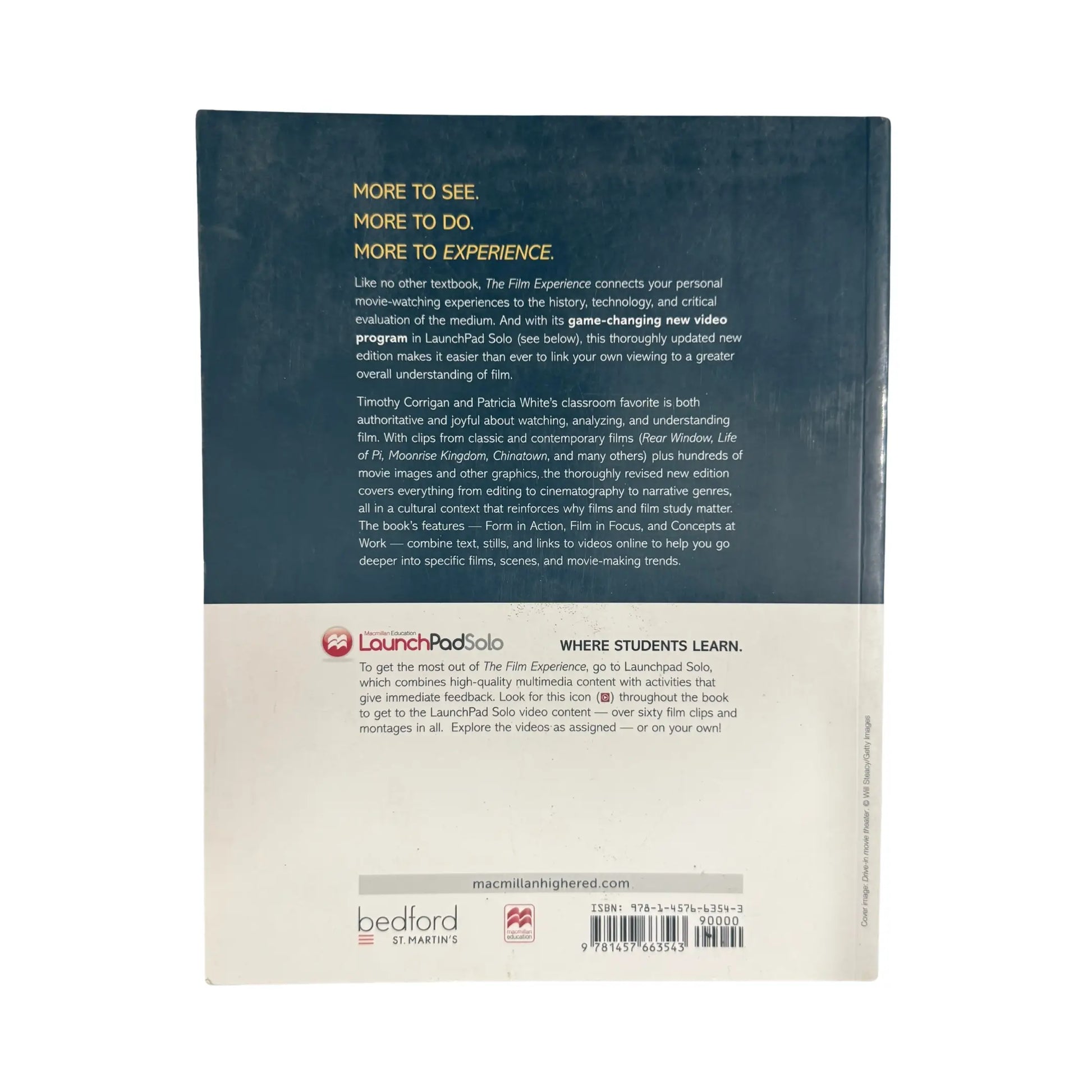 In our culture, watching movies is a universal experience – but understanding film may not be. The Film Experience reaches out to students, connecting their experiences watching movies with better understanding and knowledge of the medium's full scope. And with its game-changing new video program in LaunchPad Solo (see below), this thoroughly updated new edition makes it easier than ever to link each student’s personal viewing to a greater overall understanding of film.Timothy Corrigan and Patricia White’s classroom favorite is both authoritative and joyful about watching, analyzing, and understanding film. With clips from classic and contemporary films (Rear Window, Life of Pi, Moonrise Kingdom, Chinatown, and many others) plus hundreds of movie images and other graphics, the thoroughly revised new edition covers everything from editing to cinematography to narrative genres, all in a cultural context that reinforces why films and film study matter. The book's features—Form in Action, Film in Focus, and Concepts at Work —combine text, stills, and links to videos online to explore specific films, scenes, and trends in depth.
